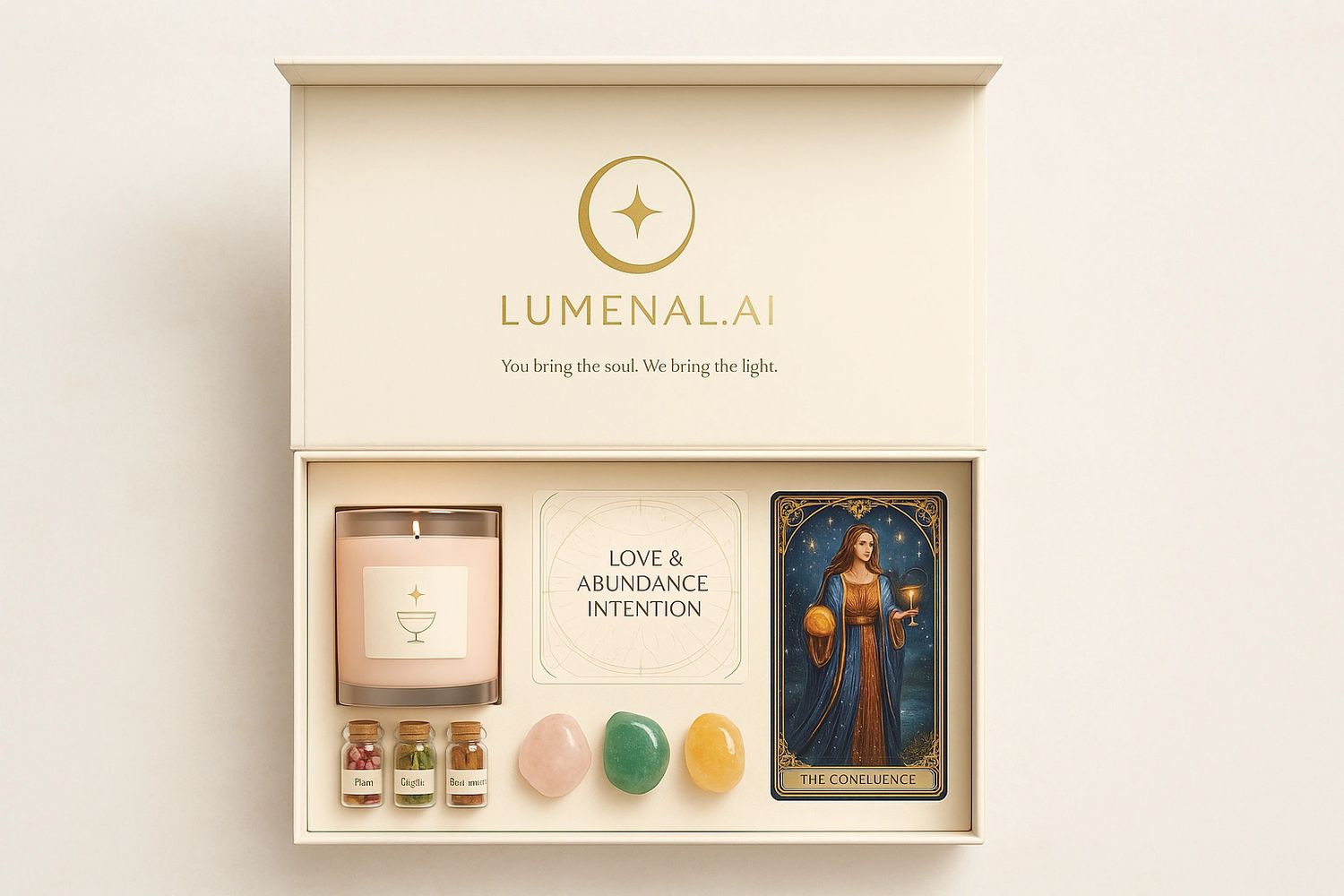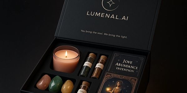 At Lumenal AI, we specialize in creating personalized metaphysical ritual boxes tailored to your unique birth data and intentions. Our kits include luxe candles, crystals, and herbs designed to enhance love, abundance, and protection.